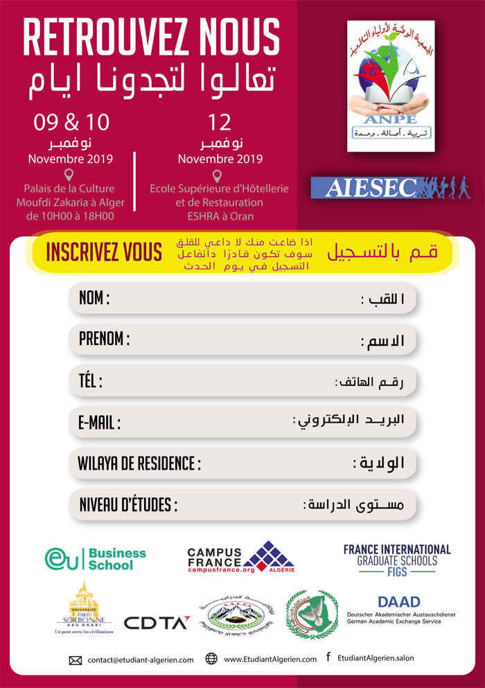إعلان عن صالون الطالب الجزائري ـ الطبعة 11